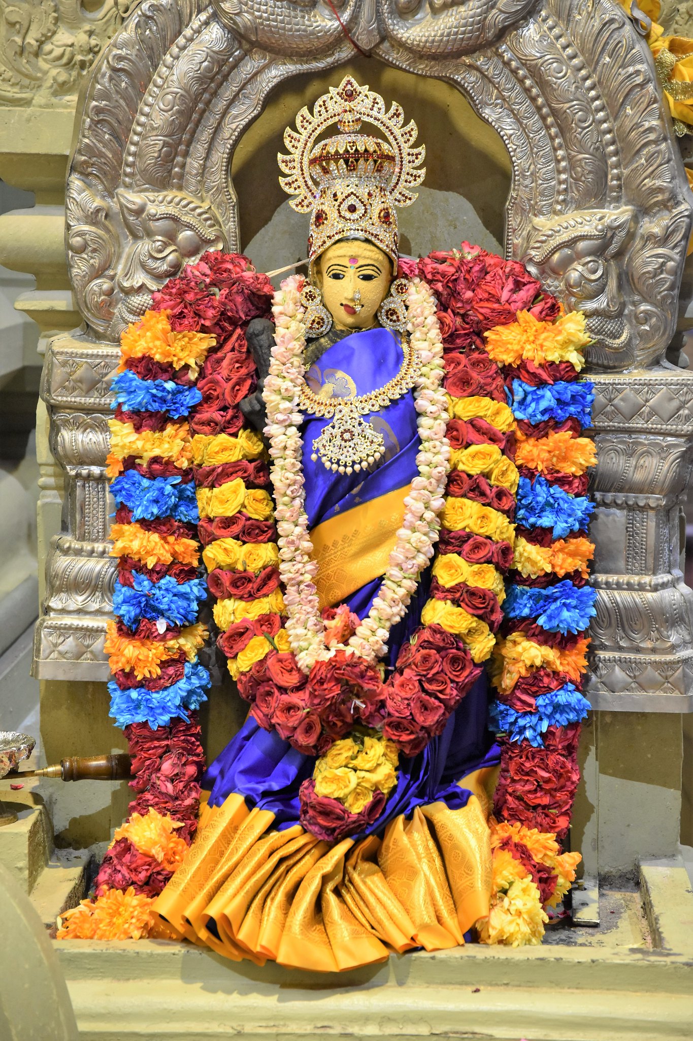 AVGMT set a new standard in Hindu temple development in June 2004 with the conduct of the Sangustaapanam Ceremony where 1008 sangus(conch shells), a symbol of Goddess Lakshmi and believed to bring luck and prosperity, were placed ceremoniously in the base of the main sanctum structure by devotees. Never before has a ceremony of this nature been conducted in this part of the world! AVGMT sprang another first with the conduct of the auspicious Bramaranthira Staapanam; a ceremony where precious stones and metals are placed on the top of the temple dome adding to its divinity what set this auspicious ceremony apart from any conducted before was the involvement of common folk in a most sacred ritual conducted usually by priests. This one must add, is a noteworthy step forward in making the religion, temple and worship relatable to one and all, need for a place of which goes beyond addressing its religious needs. The final form of the temple is definitely majestic without being overly ornamental.